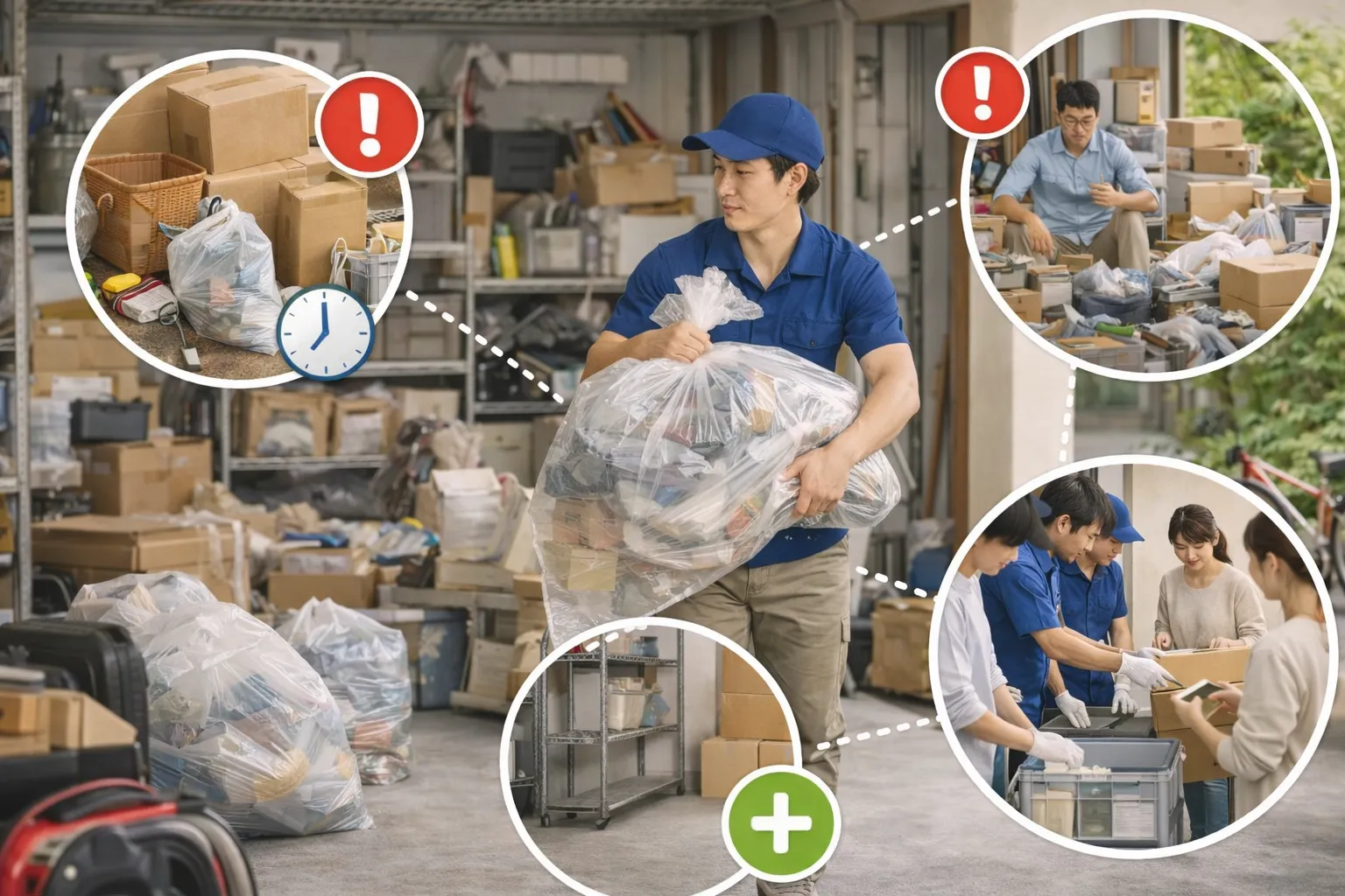 倉庫片付けは、方法だけでなく注意点を押さえるかどうかで結果が変わります。途中で挫折したり、思わぬ追加費用が発生したりしないよう、失敗しやすい場面を先に知っておくのが安心です。