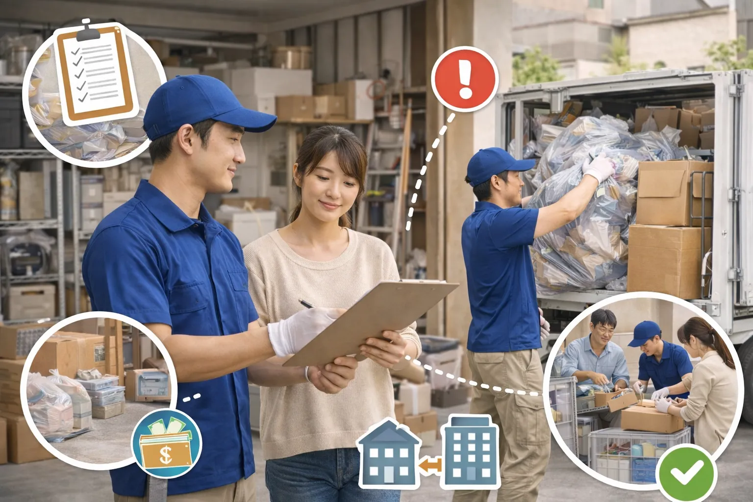 ただし、ぼったくり被害を避けたいなら、安さだけで決めない姿勢が重要になります。見積もりは書面で受け取り・作業範囲・追加料金の条件・処分方法の説明があるかを確認しましょう。